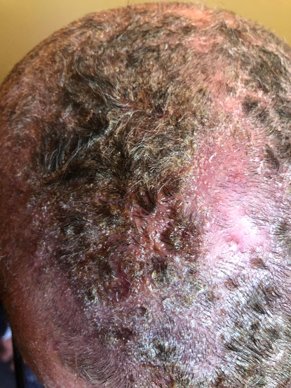 May 27th saw the unwelcome return of my skin rash but this time it focused on my head. This resulted in complete makeover of my bonce that needed all my hair to be shaven off and the scalp basically did a NASA impression of the moons landscape in all its horrific glory (photo enclosed).